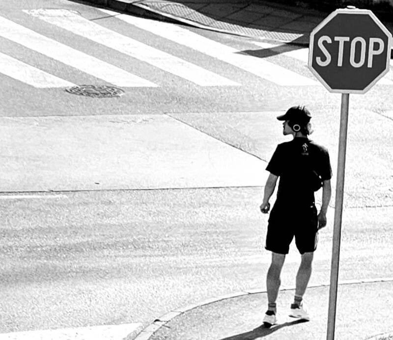 Zid na kojem sjedi, oronuo je i star. Izgubio je funkciju odavno. Predstavlja krug. U žitu, ili Danteovom Paklu. Na cesti koja ga prati odvija se život u punom sjaju. Prolaze njome svi. Samo rijetki obraćaju pažnju.